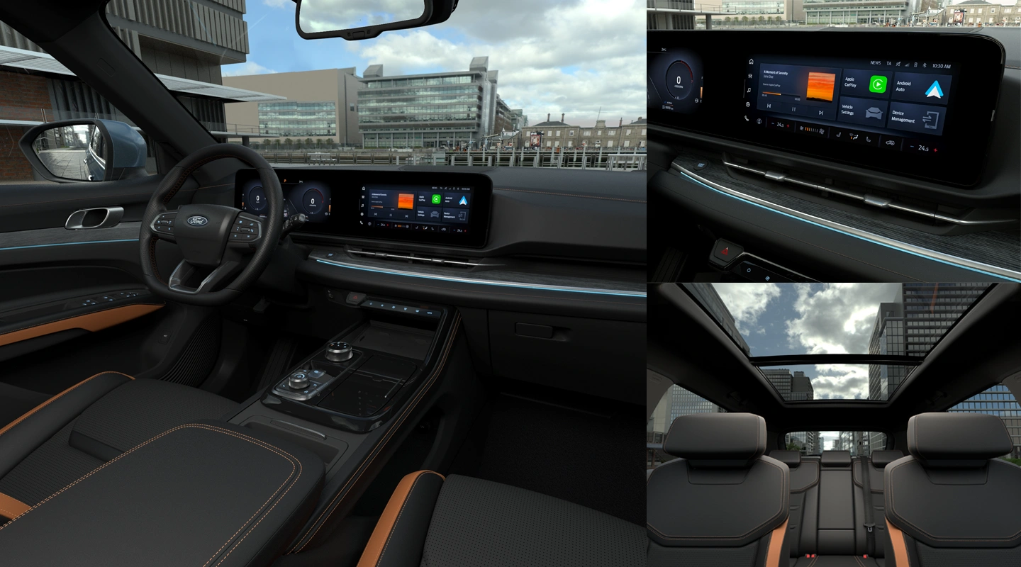 Nội thất Ford Territory Thế Hệ Mới tiếp tục tuân thủ triết lý thiết kế DNA toàn cầu của Ford với những đường cong mềm mại, tinh tế trải dài sang hai bên nhấn mạnh sự bề thế, rộng rãi và sang trọng.